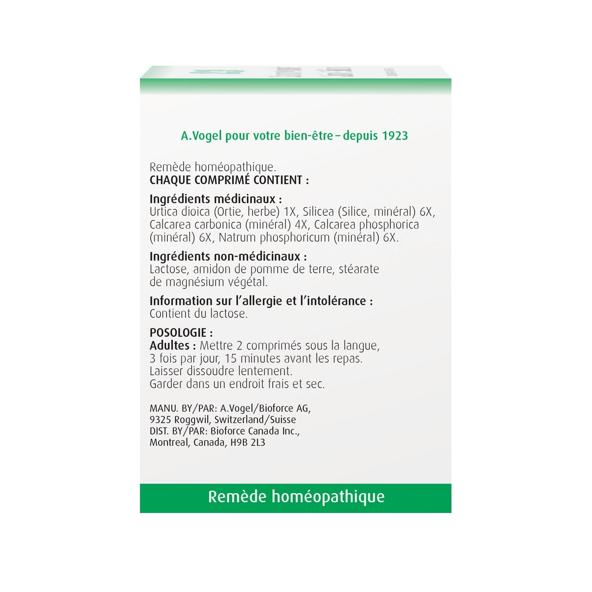 Homeopathic combination of stinging nettle herb, silicea, calcium and sodium salts.