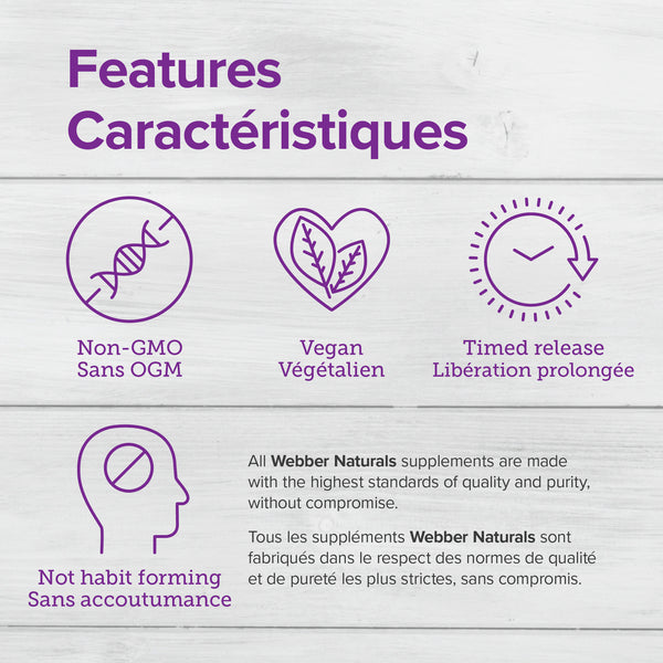Sleep Cycle provides an effective combination of natural sleep aids and relaxants to calm nervousness and support sound, restorative sleep using Webber Naturals’ advanced tri-layer technology!