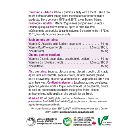 The Jamieson Zinc Gummy is a delicious way to ensure you are receiving adequate zinc to support both your immune and skin health.