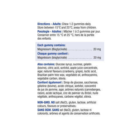 • Each gummy provides 20 mg of Magnesium (Bisglycinate)
