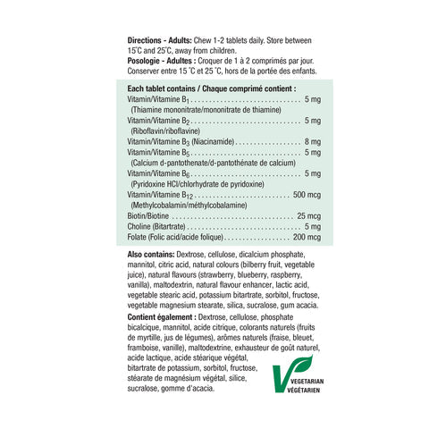 Jamieson Chewable Vitamin B complex is ideal for anyone who doesn't like to swallow pills. This berry-flavoured chewable tablet delivers your essential daily B vitamins to help boost your energy, maintain healthy nerves, ease stress and maintain heart health.
