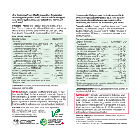 Jamieson 高级益生菌 + 维生素 B12、C、D 和锌 4,30 粒胶囊