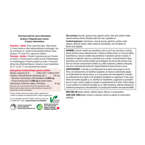 Jamieson 女性健康益生菌软糖采用经临床验证的益生菌菌株,有助于促进阴道微生物群平衡。本产品富含益生菌、益生元和蔓越莓,美味又有效,为女性健康提供支持。