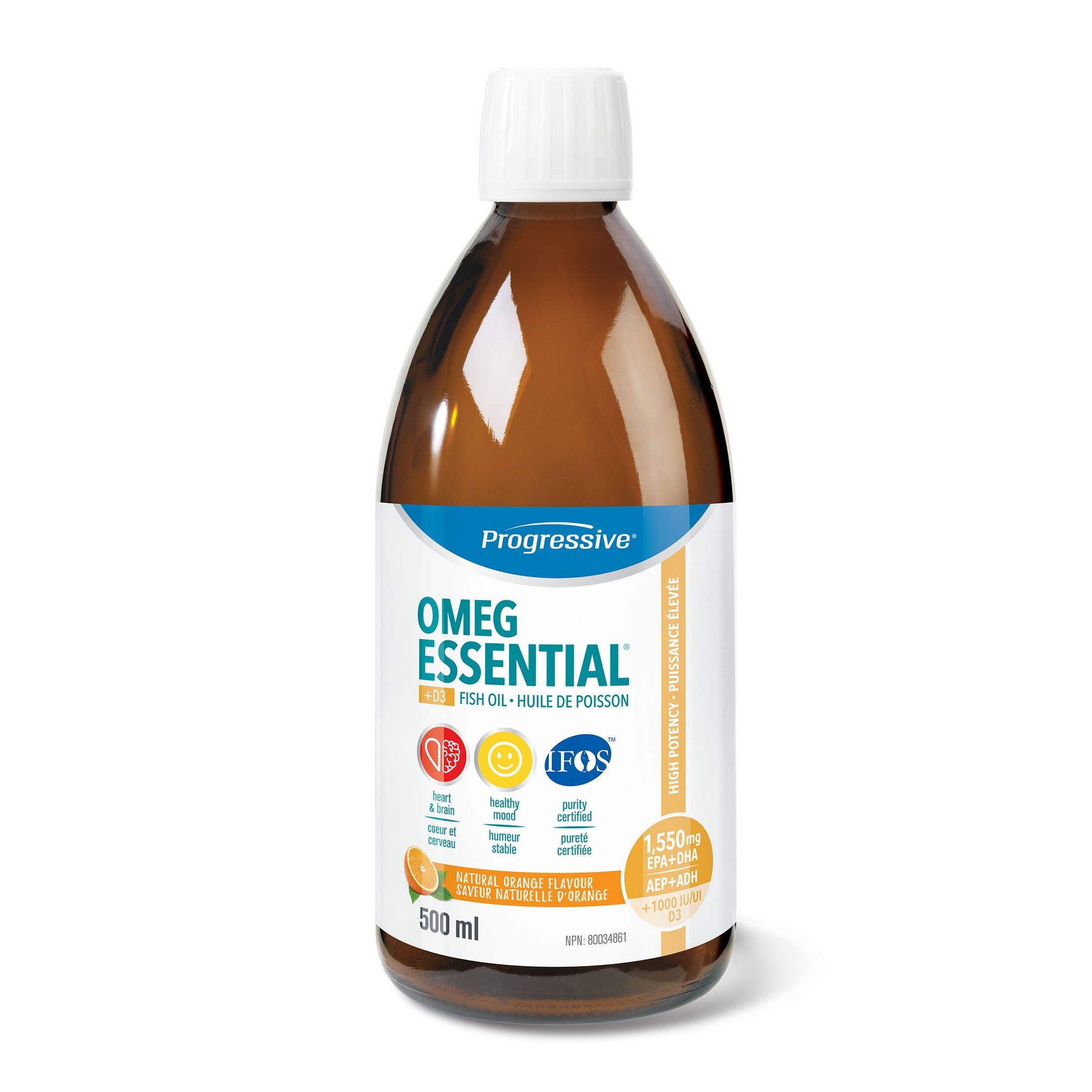 Progressive 液体高效鱼油+维生素 D3,橘子口味 500 毫升