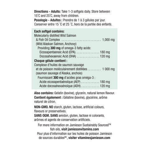 没有腥回味的野生三文鱼油可提供欧米茄营养以帮助促进心脏和大脑健康。Jamieson最新的欧米茄营养素采用优质鱼油,经提纯可去除毒素和杂质,并以天然柠檬精制而成,保证无鱼体验的鱼油。