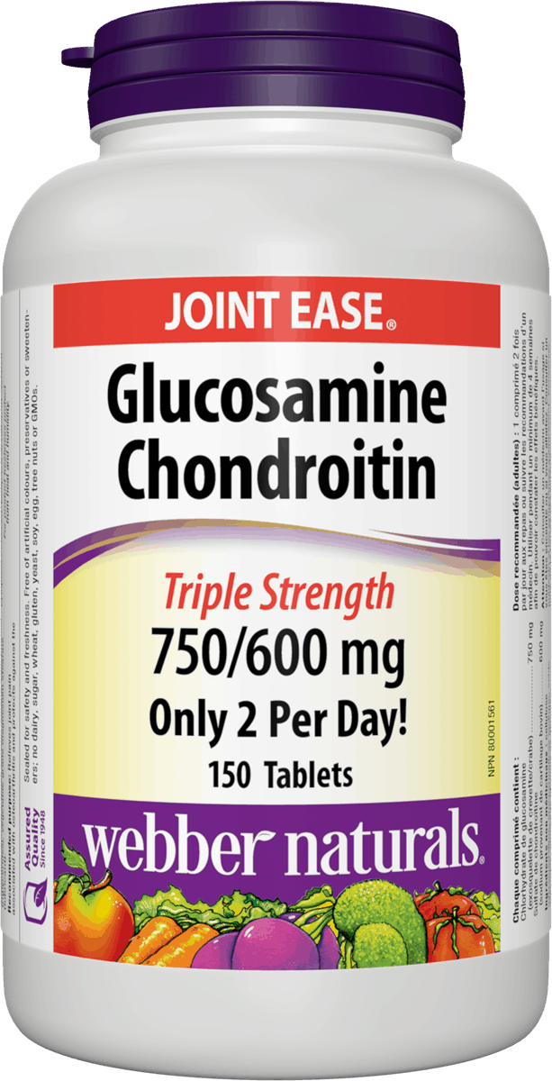 补充葡萄糖胺和软骨素可能会减轻关节疼痛、僵硬、压痛和肿胀,并提高关节性能。来自 Webber Naturals 的氨基葡萄糖软骨素三倍强度有助于减缓骨关节炎的进展,保持关节和结缔组织的结构完整性,并减少与骨关节炎相关的任何疼痛——每天只需两片!