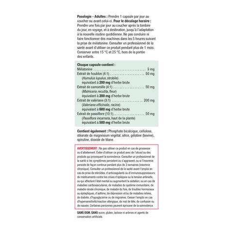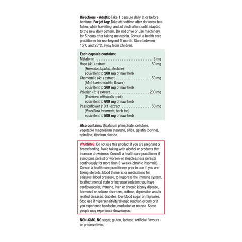 Jamieson 壓力與睡眠支援產品含有褪黑素、纈草、西番蓮、洋甘菊和啤酒花萃取物。它可以幫助您放鬆身心,同時縮短入睡時間。